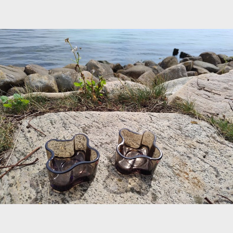 Alvar Alto Iittala skål fyrfadsstage i smoke / røgfarvet glas.